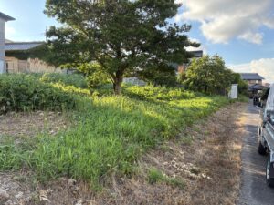安城市、伐採、抜根、草刈り、防草シート作業に行ってきました。